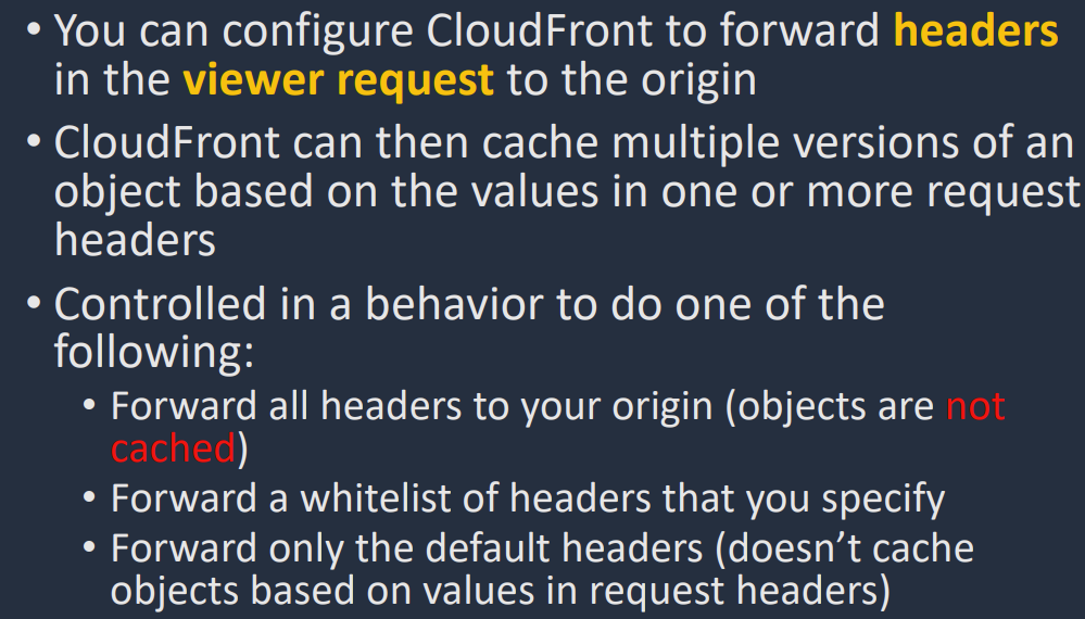 - Tất cả các HTTP Header, Cookie, query string mà include trong Cache Key sẽ tự động được foward tới origin