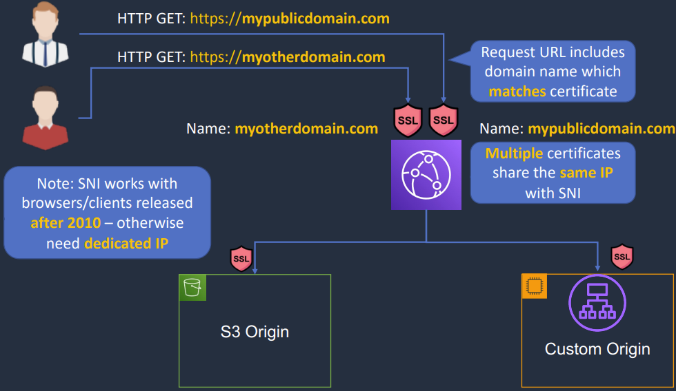 SNI là 1 IP của cloudfront có thể sử dụng nhiều SSL