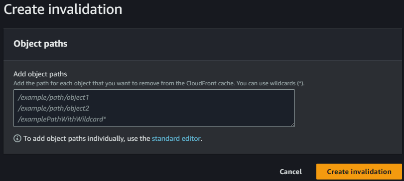 Sử dụng khi origin có update nhưng các Edge của Cloudfront đã cache object, cần clear cache.