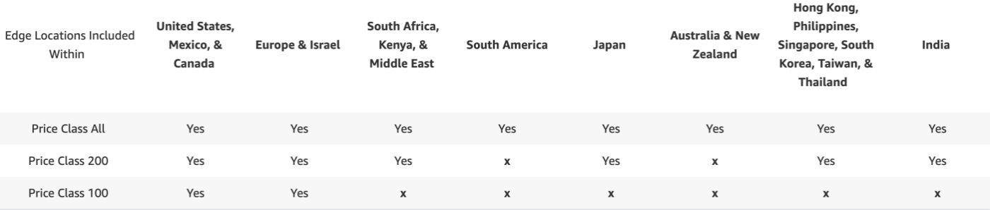 - Price Class 100: Chỉ bao gồm những Region phí rẻ