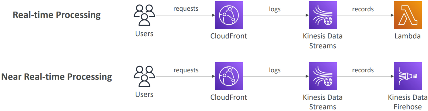 - Lấy realtime thông tin request được nhận bởi cloudfront rồi gửi tới Kinesis Data Stream