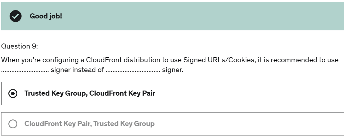 - Signed Cookie: Cho phép truy cập nhiều file, có thể sử dụng lại